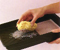| Ragging:- Ragging, or ragrolling, creates a lively flow of textured colour. It is best kept to softer colour combinations, where the glaze is a slightly deeper tone of the groundcoat colour. This is a stylish, imaginative way of producing a soft, yet highly patterned design. It can add drama and interesl to rooms with plain carpets or fabric and cover up poor wall textures. Ragging is simply a matter of dabbing a rag randomly onto the surface to create an even texture, and can be done with darker shades onto a light base. | ![]() |